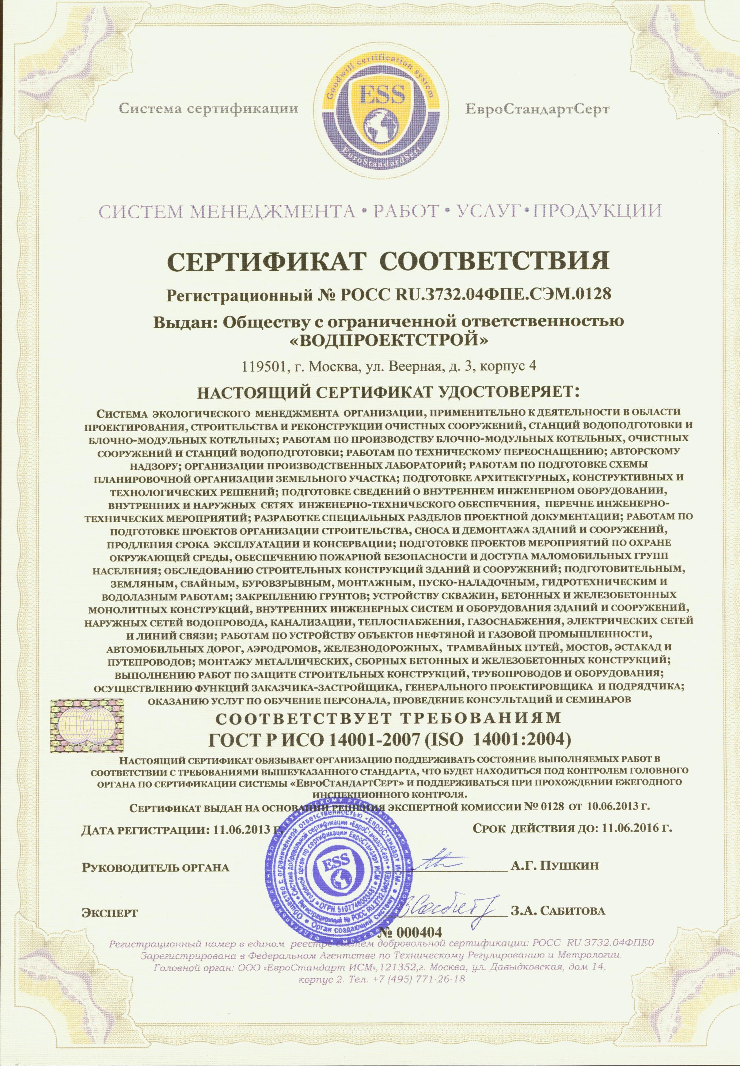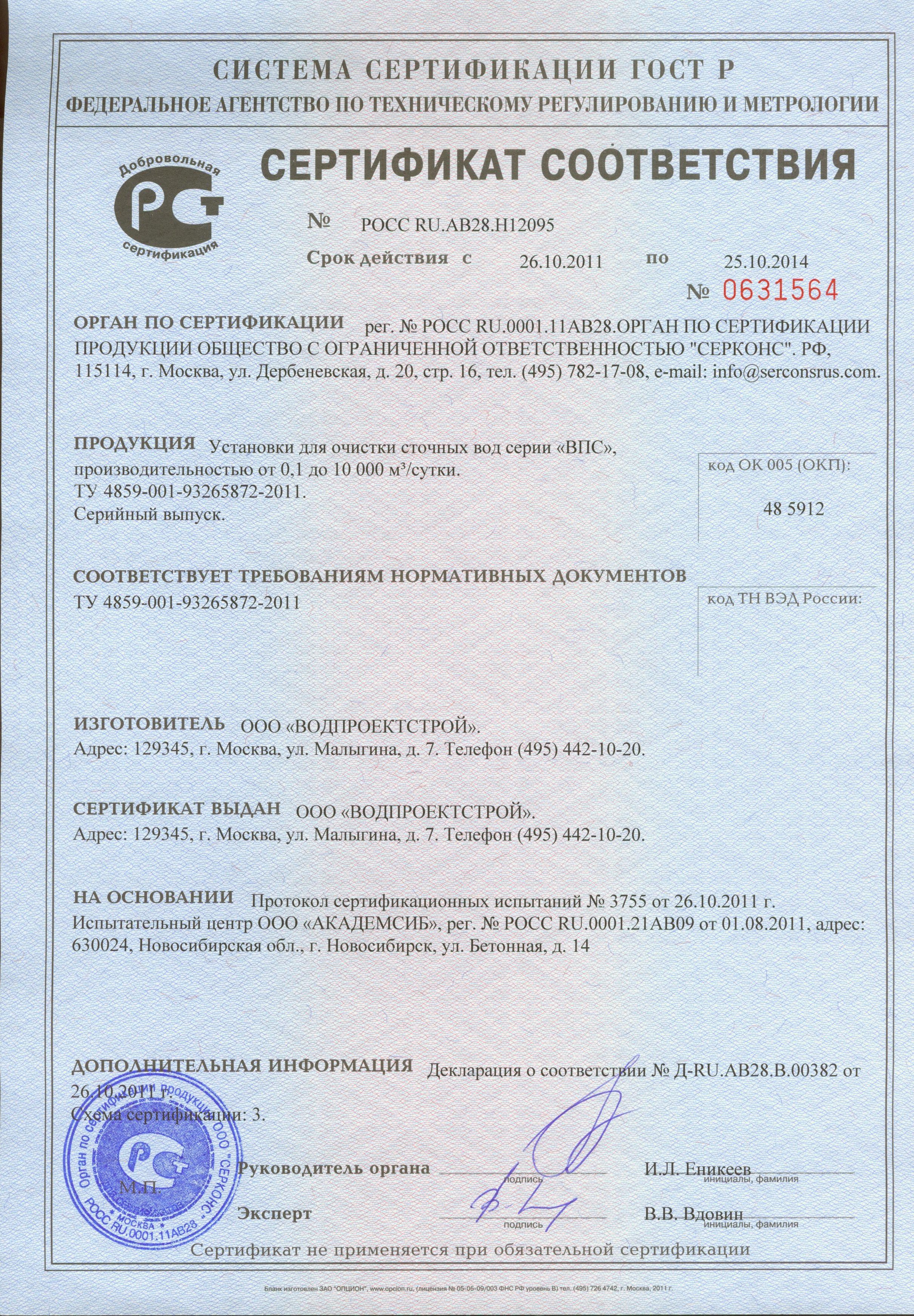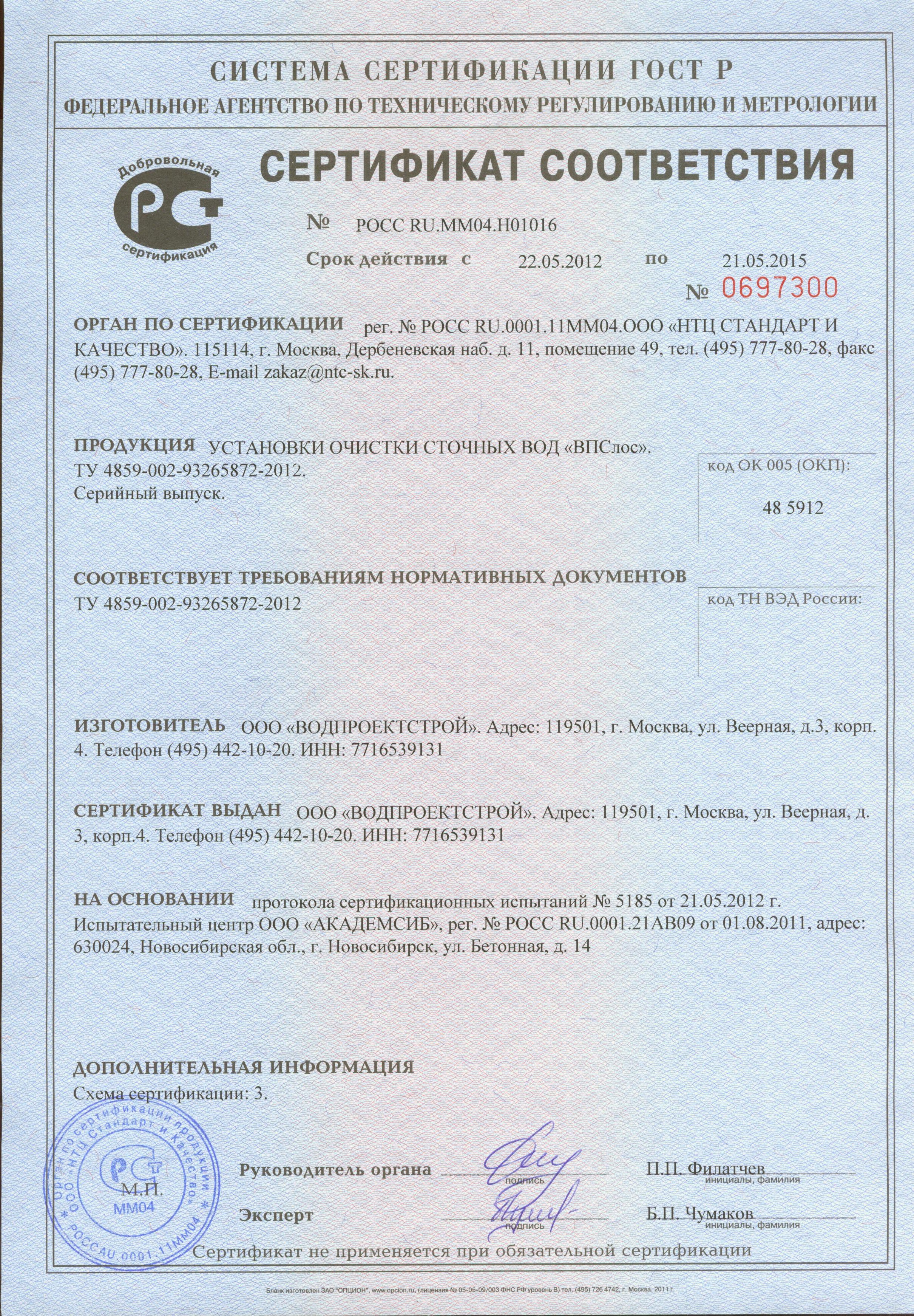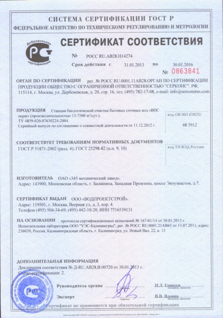 Здесь представлены копии действующих документов, подтверждающие нашу компетентность и право заниматься деятельностью по проектированию, монтажу и обслуживанию систем очистки воды.