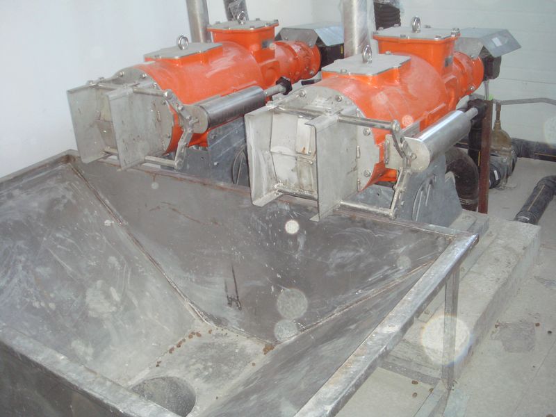 Далее стоки насосом подаются на шнековый сепаратор, откуда отфильтрованная вода подается на флотатор, а обезвоженный кек влажностью до 80% вывозят на поля компостирования.